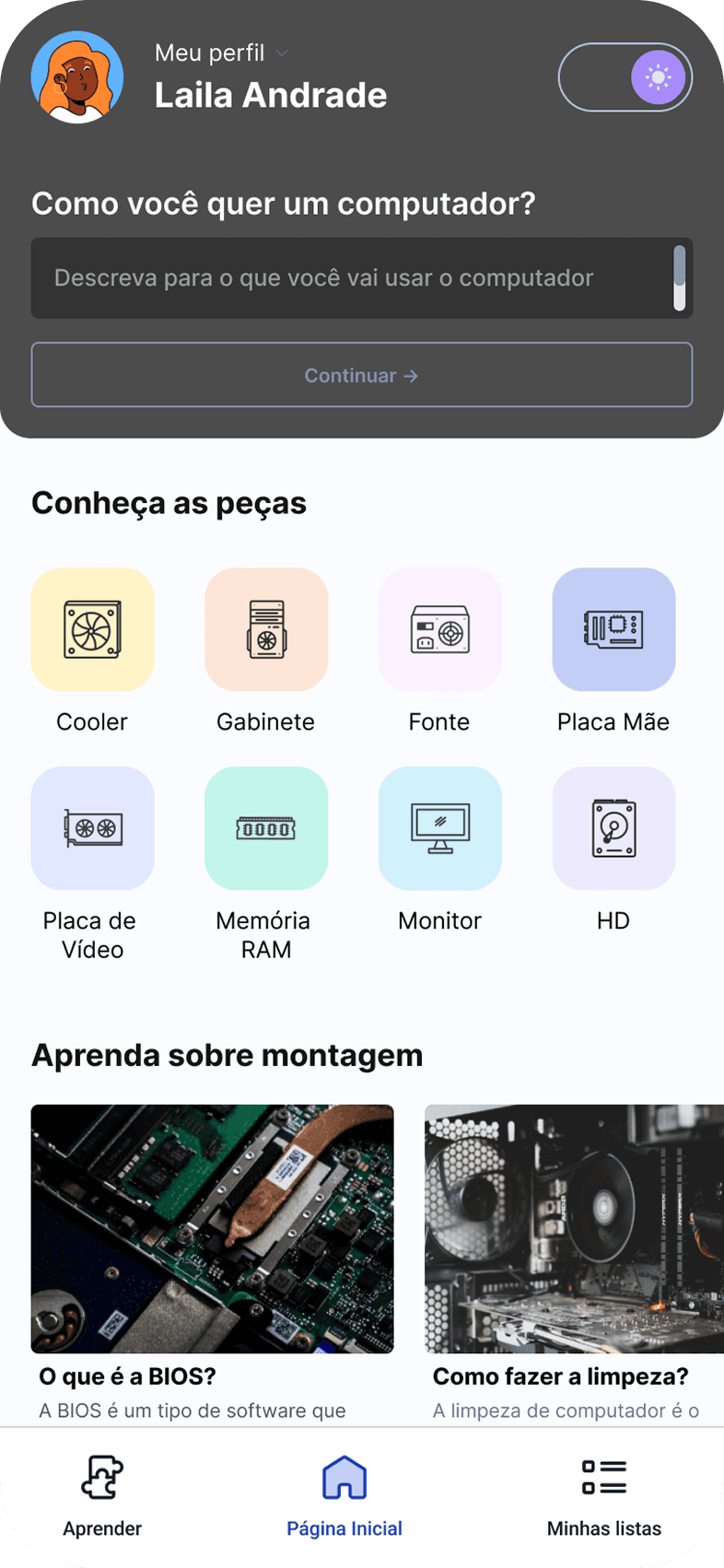 O Monta PC Fácil App - é focado em pessoas com baixo conhecimento na compra, escolha ou montagem de computadores de alta performance no Brasil. Atuei como UX e UI Designer para provar o real problema, e explorar alternativas de testes de usabilidade e análises de UX para projetar a melhor experiência no momento.